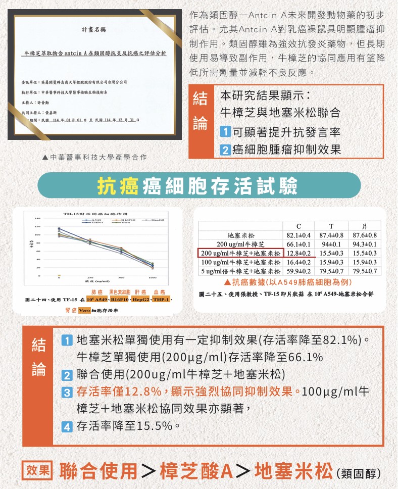 牛樟芝萃取物含Antcin A在類固醇抗炎及抗癌之評估分析